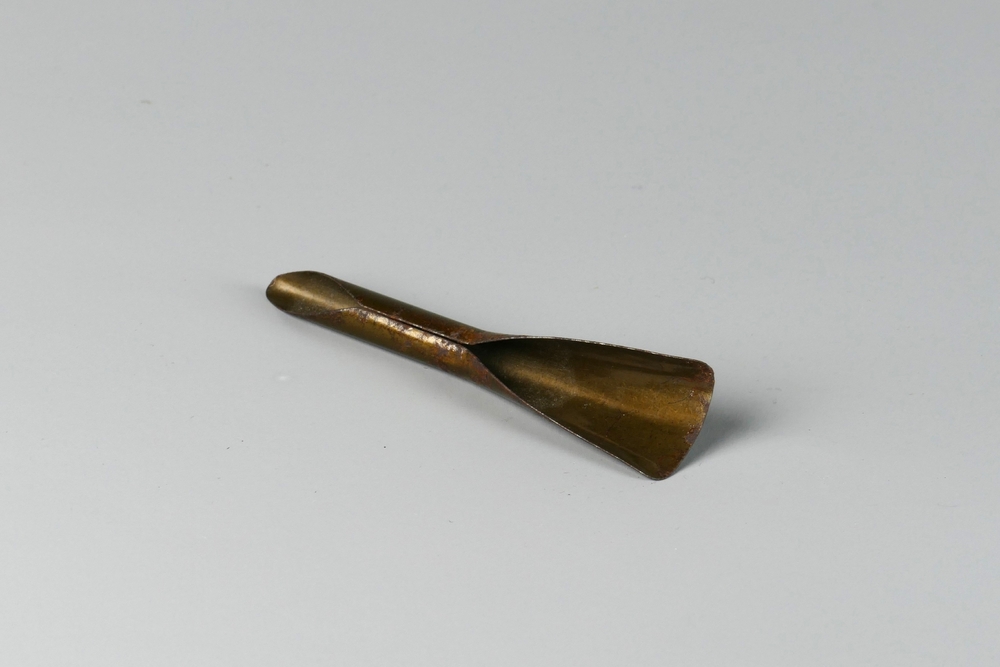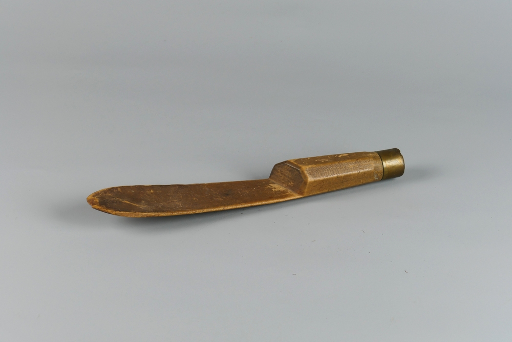 mes van hout, spatelvormig met geelkoperen ring, gea...
