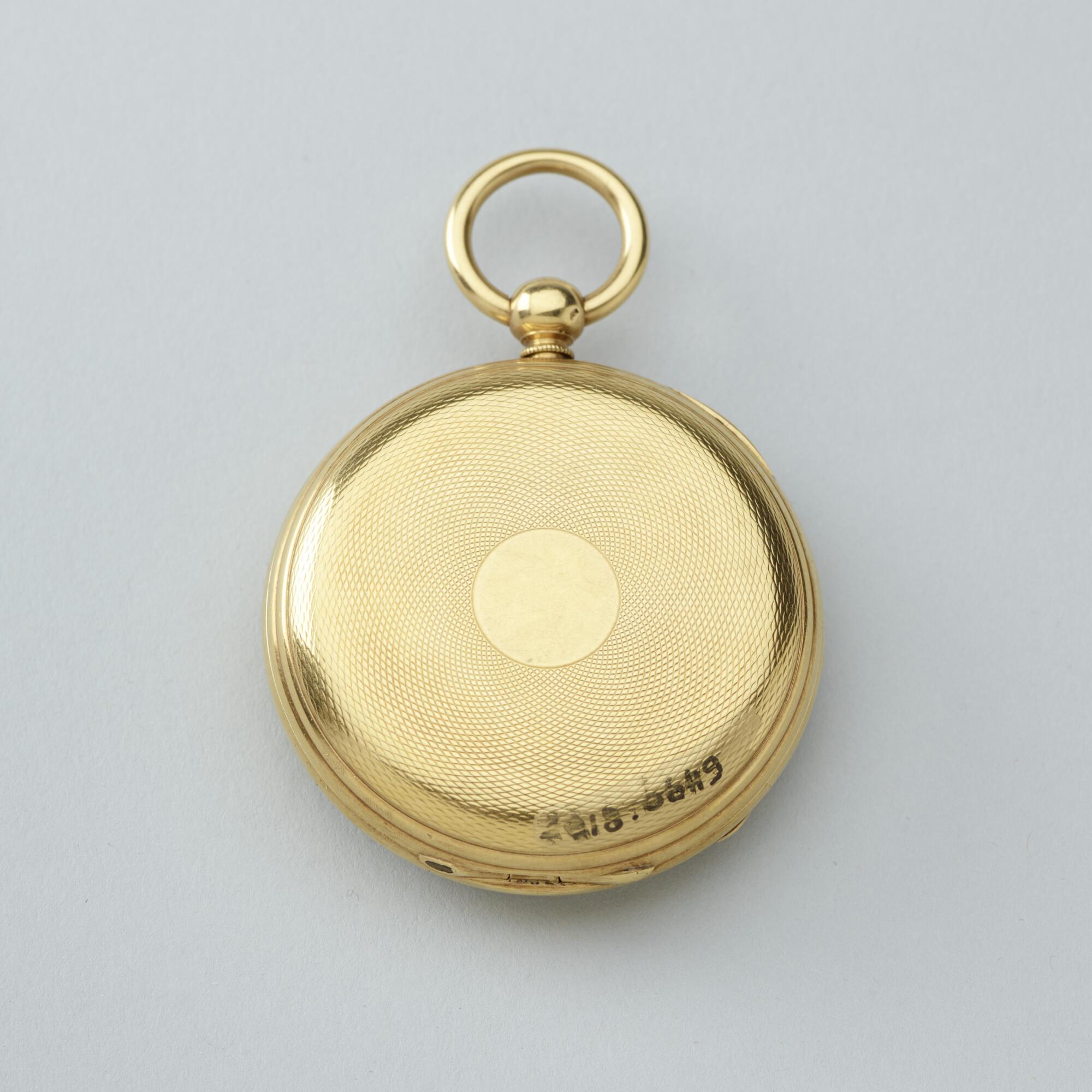 Gouden zakhorloge met inscriptie, geschonken aan kap...