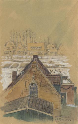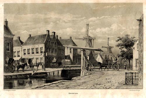 Aquarel van de Hoofdbrug te Drachten rond 1870