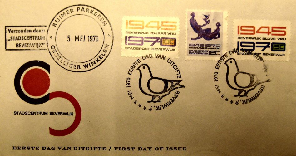 Eerste dag uitgifte bevrijdingszegels Beverwijk 5 me...