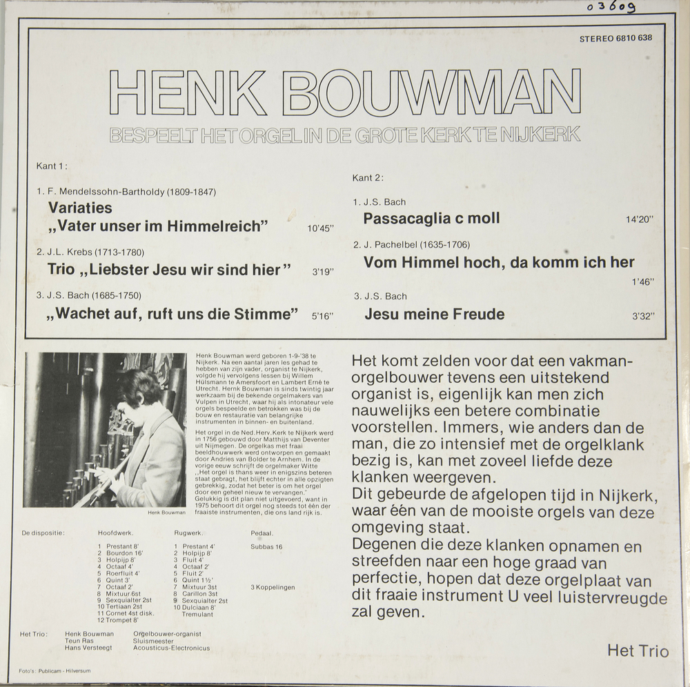 Langspeelplaat ‘Henk Bouwman bespeelt het orgel in d...