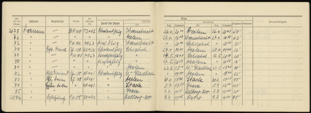 Flugbuch Hptm. Framm blad 18 - va 2075