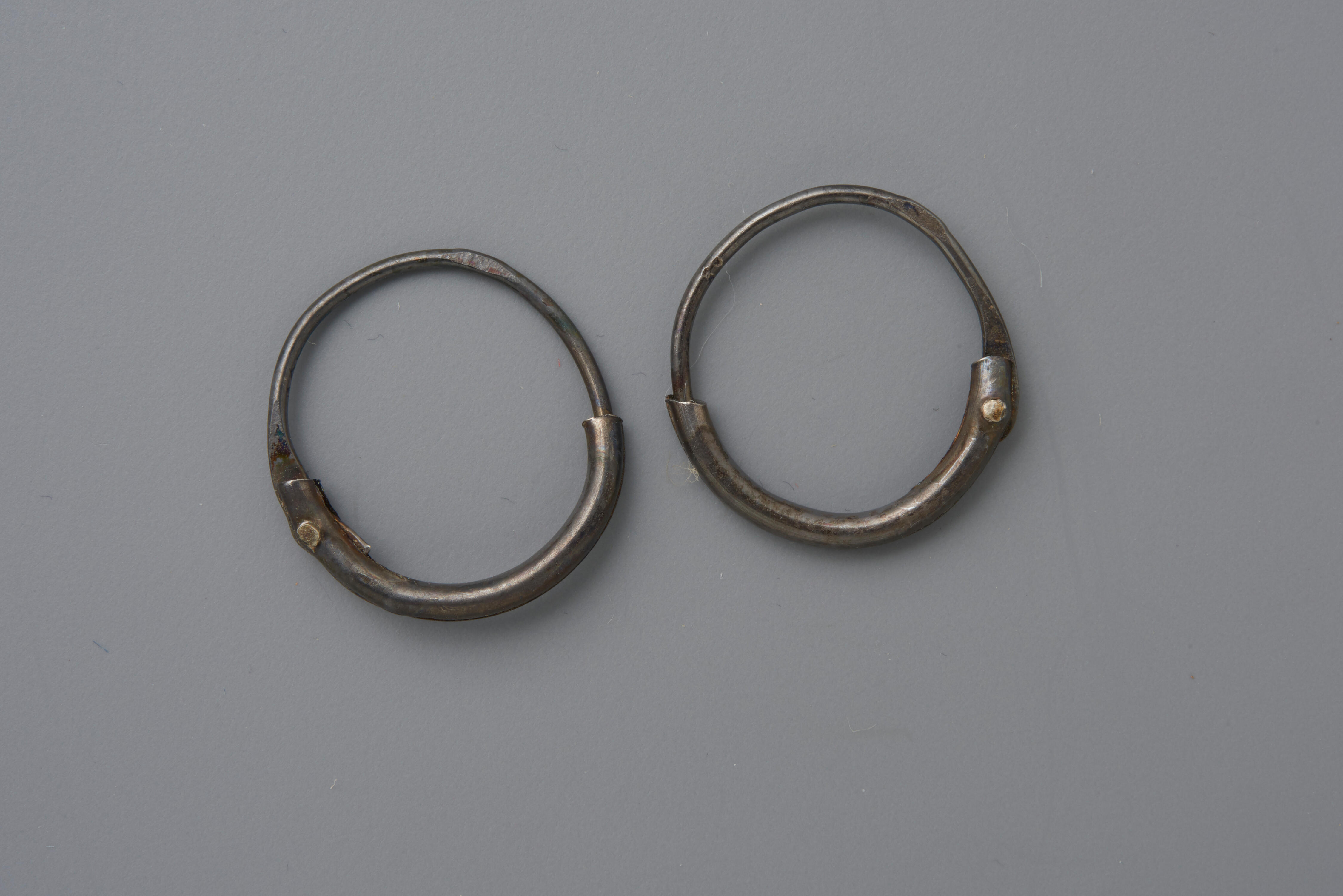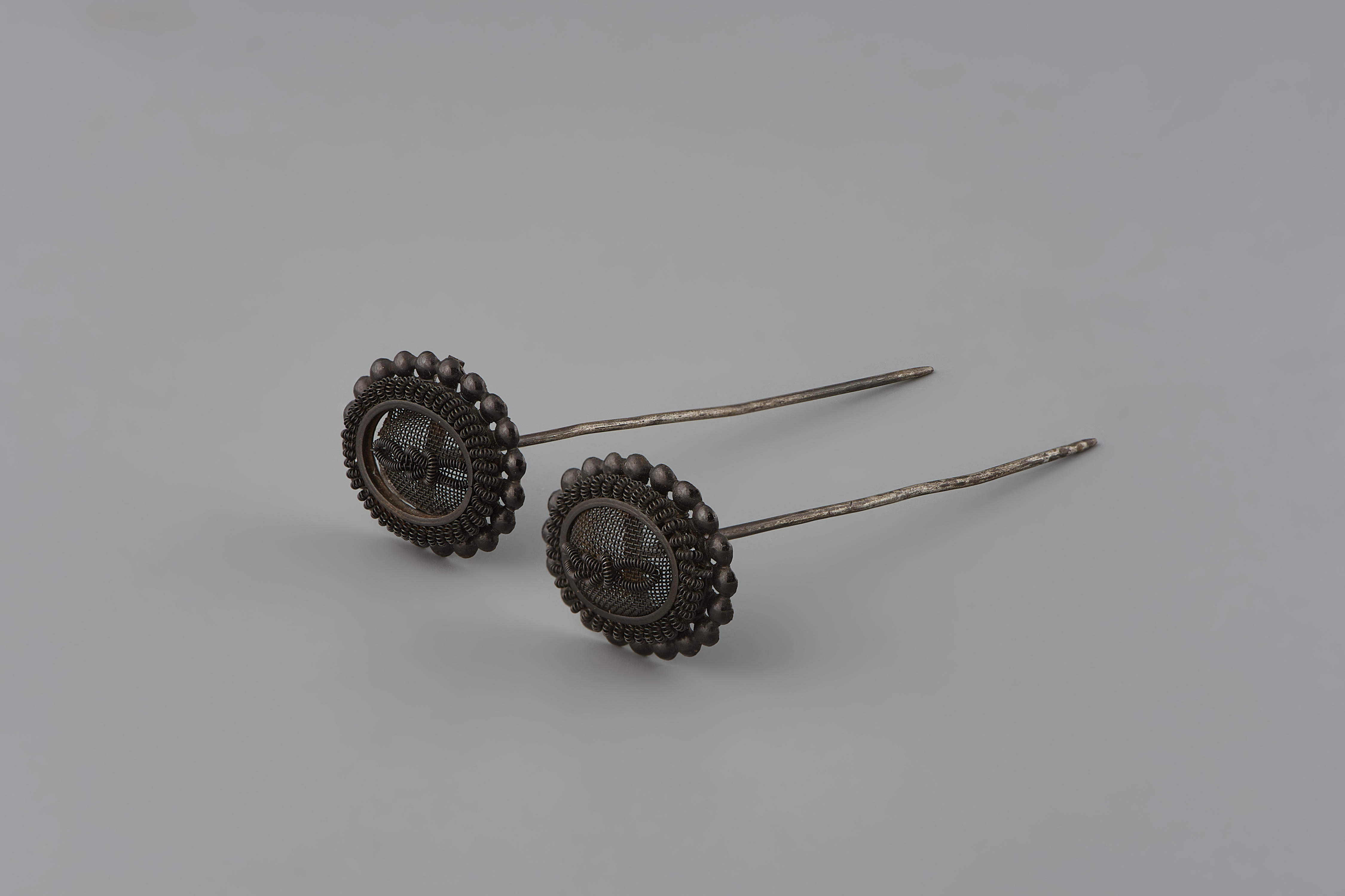 Paar zilveren oorhangers bij rouwdracht, Noord-Braba...