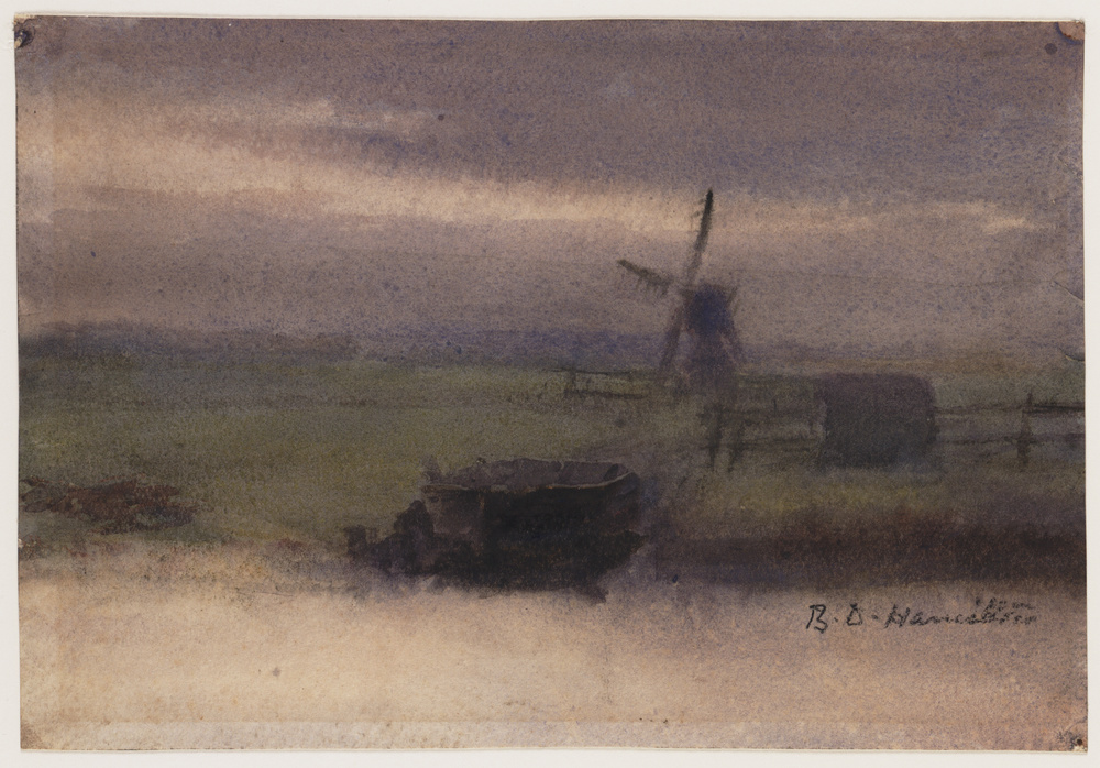Hollands polderlandschap met molen en voederbak