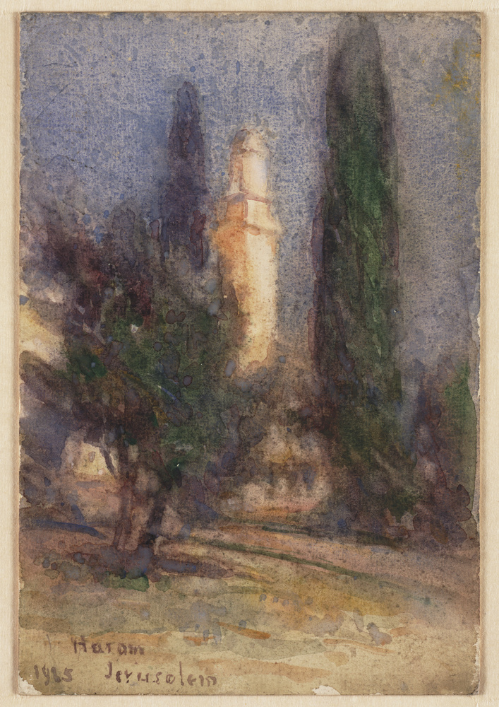 Tussen bomen uitstekende toren in landschap, Jeruzal...