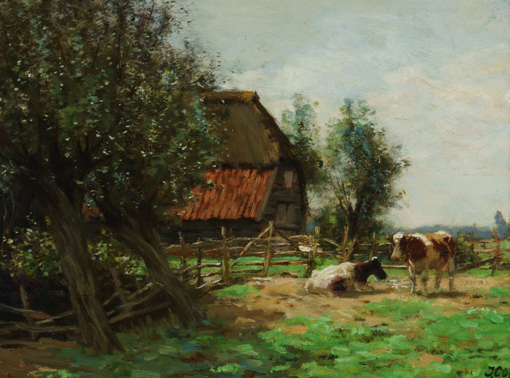 Landschap met koeien en boerderij