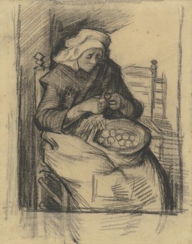 Aardappelschillende vrouw