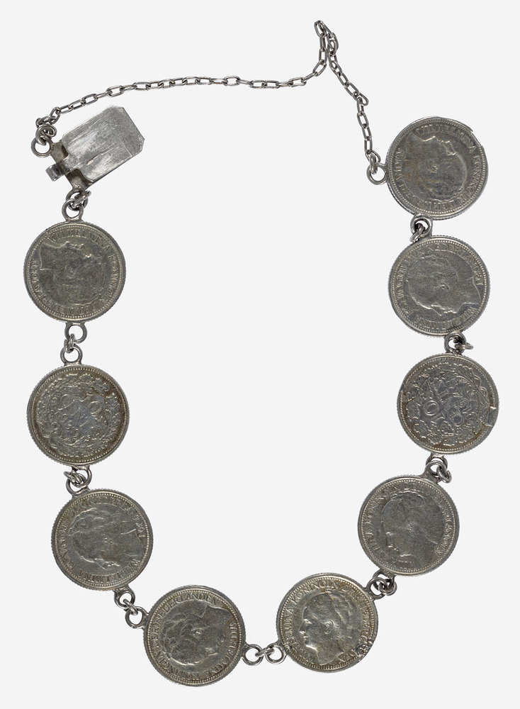 armband gemaakt van zilveren Wilhelmina dubbeltjes