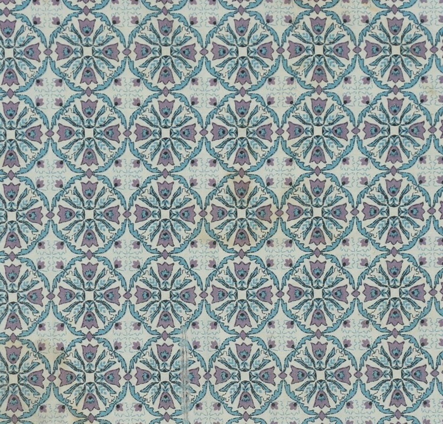 Factory woven and printed cloth hand stitched (running stitch) appliqué (1)