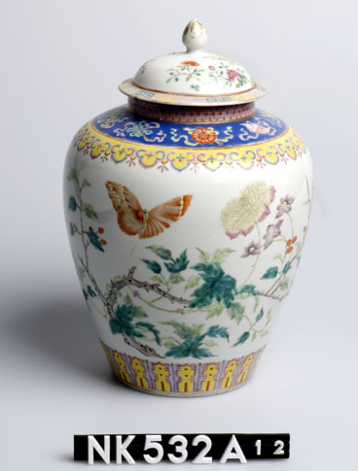 Dekselpot van geglazuurd porselein en polychroom dec...