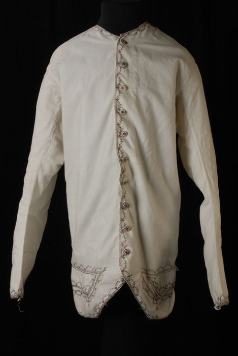Herenvest van wit katoen met zijdeborduursel langs d...