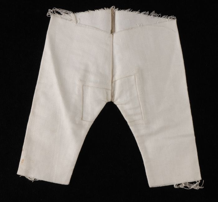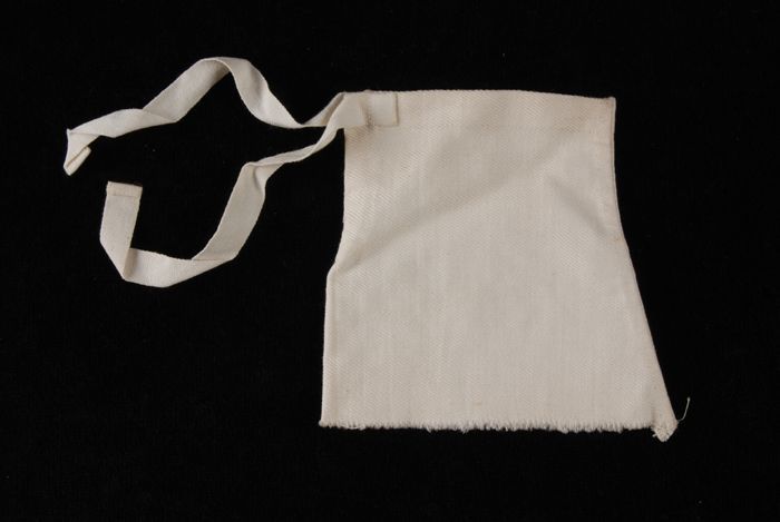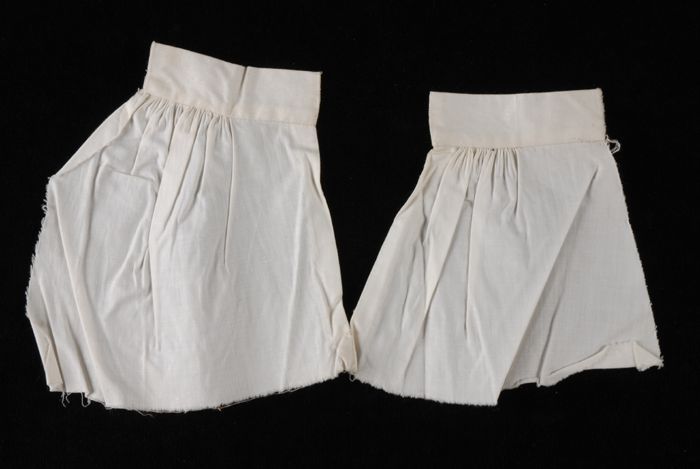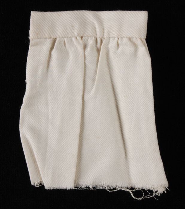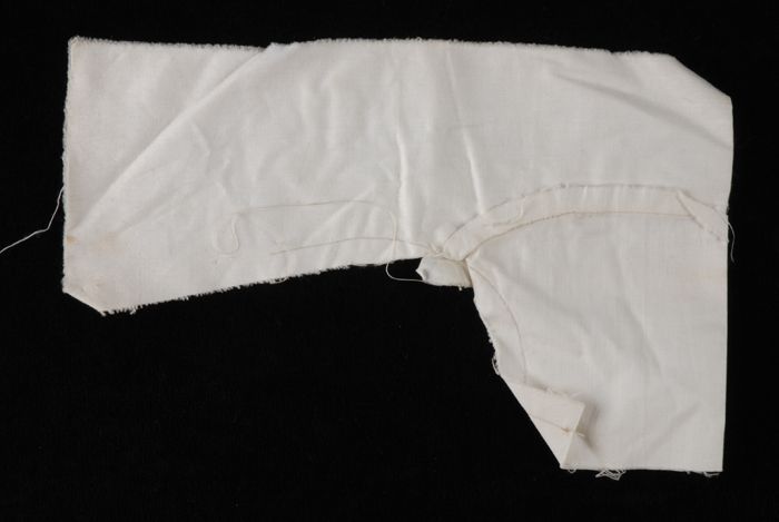 Miniatuur achterpand van een rok (?) van wit katoen ...