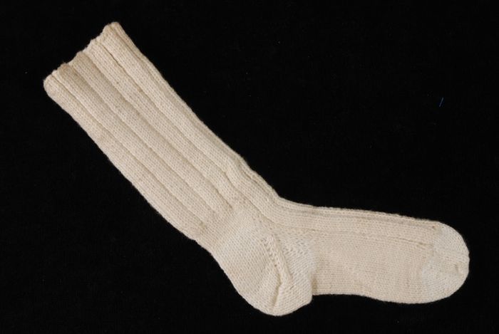 Kindersok gebreid van crèmekleurig katoen, oefening