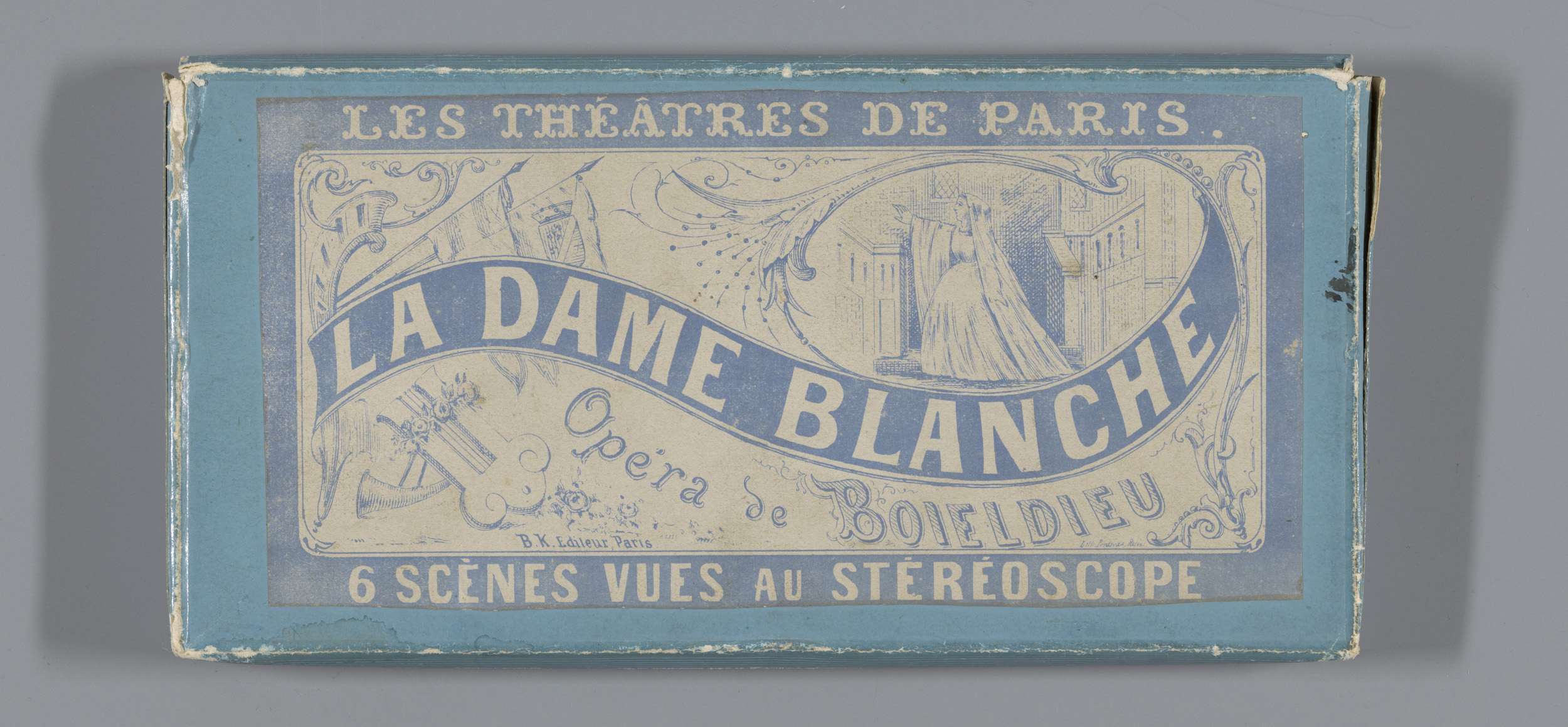 Doos ter verpakking van 6 stereofoto's van het theat...