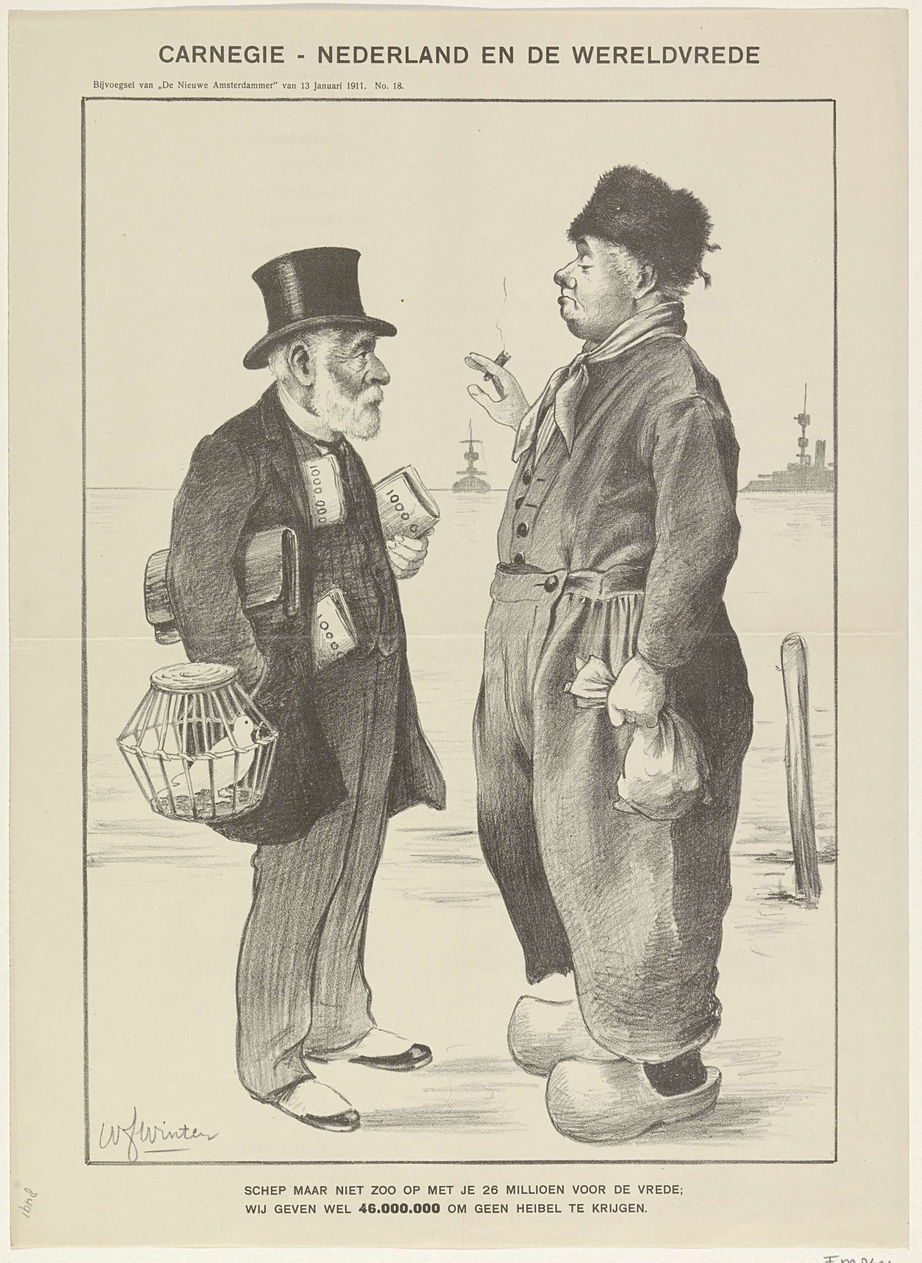 Spotprent met Carnegie en de Nederlander, 1910