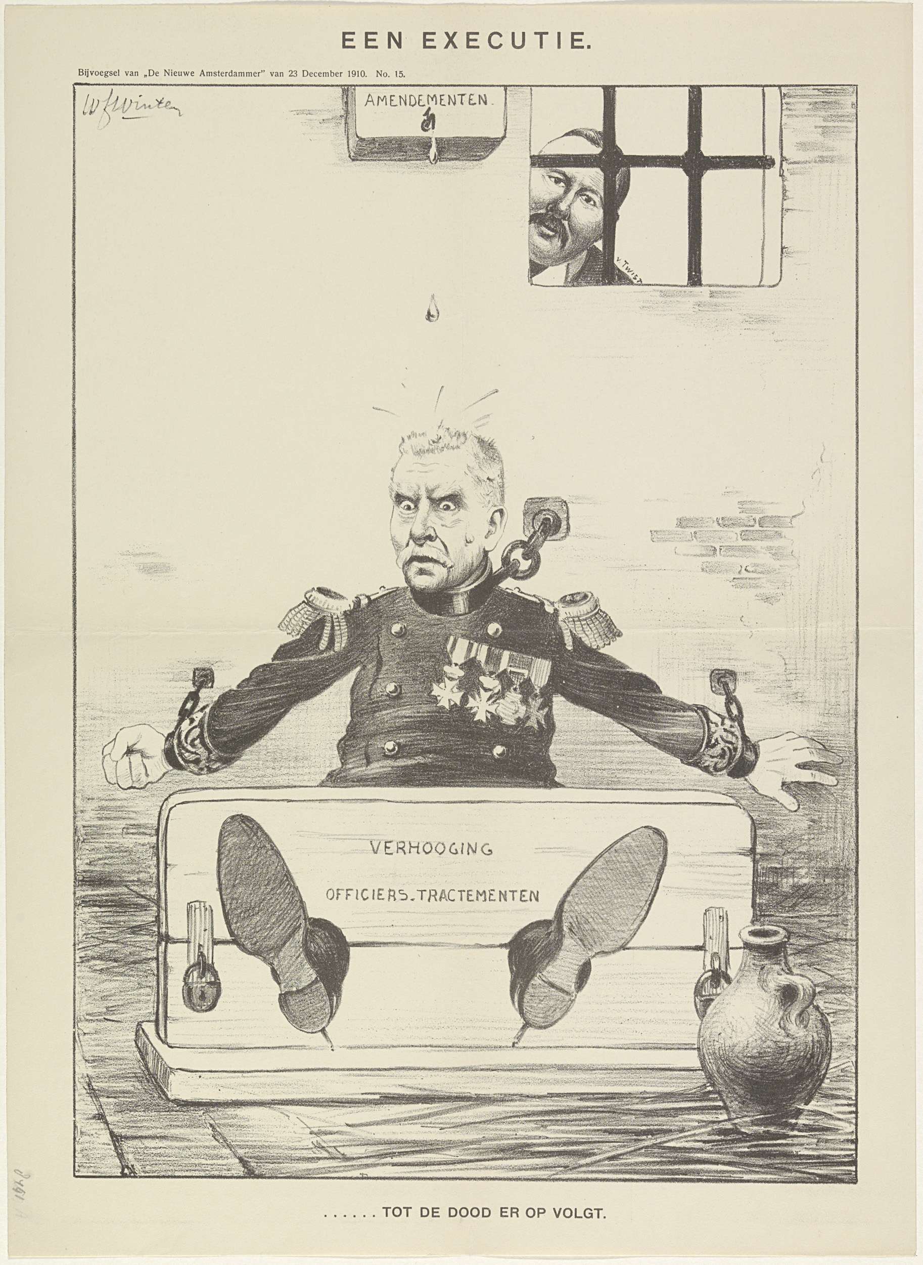 Spotprent over de verhoging van de officierstracteme...