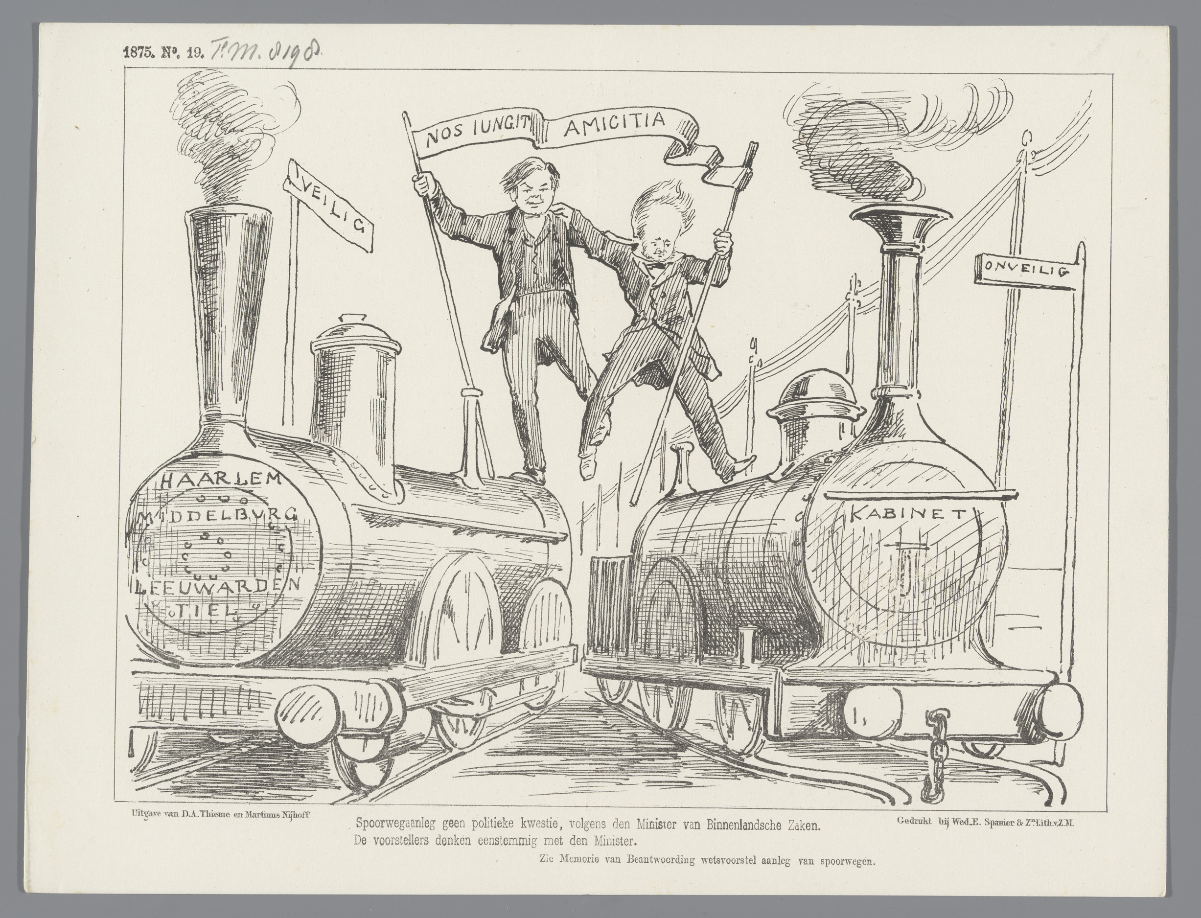 Spotprent nav het wetsontwerp over de spoorwegen, 1875