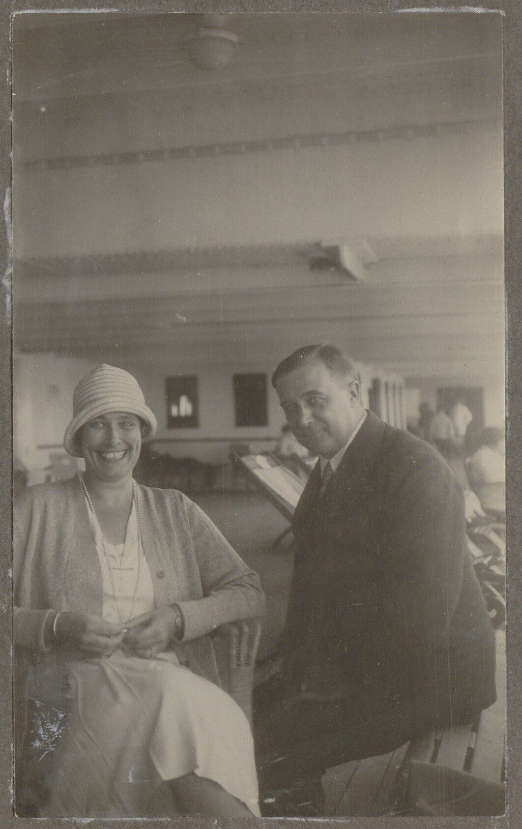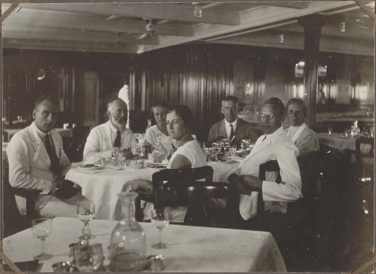 Gezelschap aan tafel in eetzaal van stoomschip Konin...