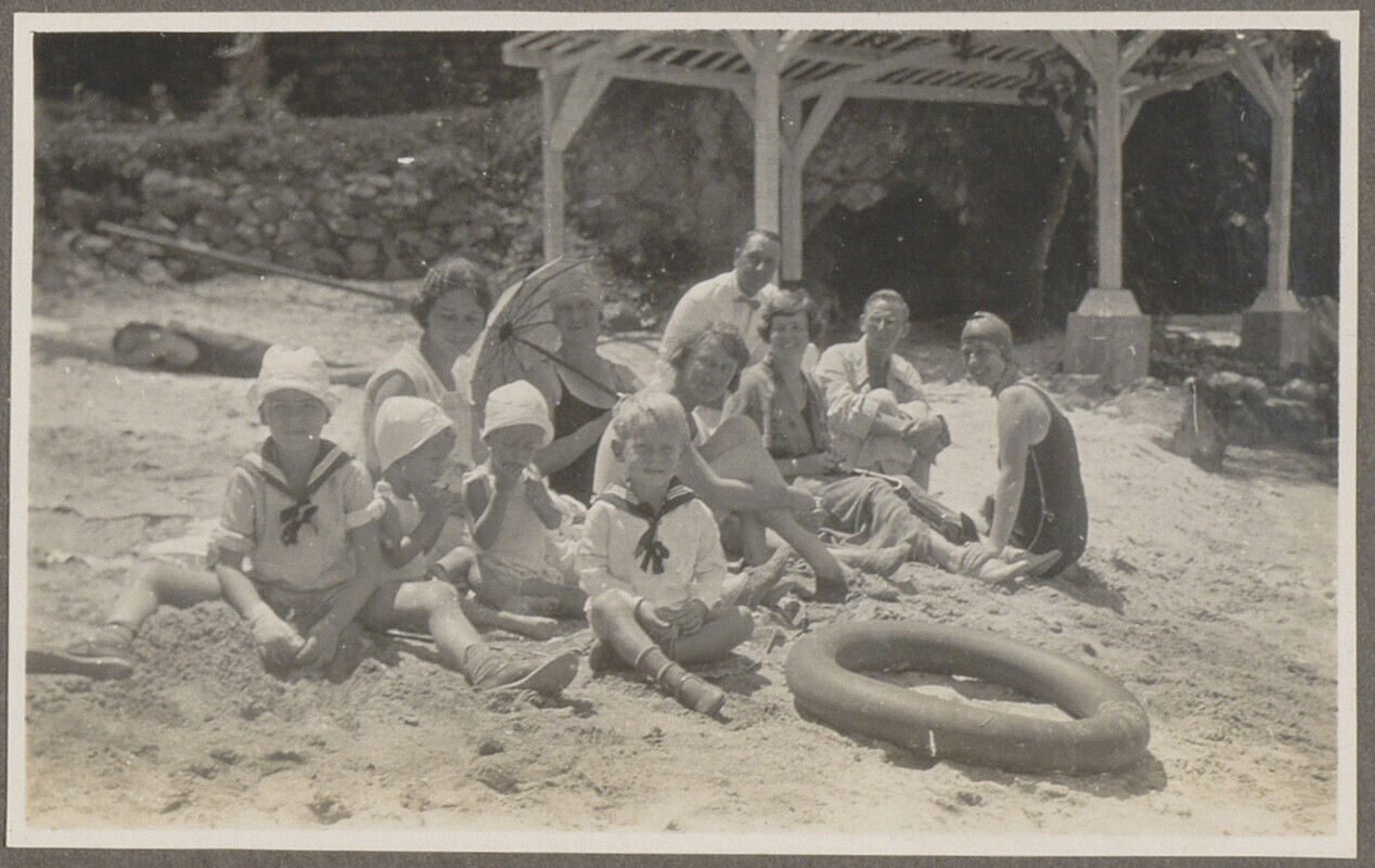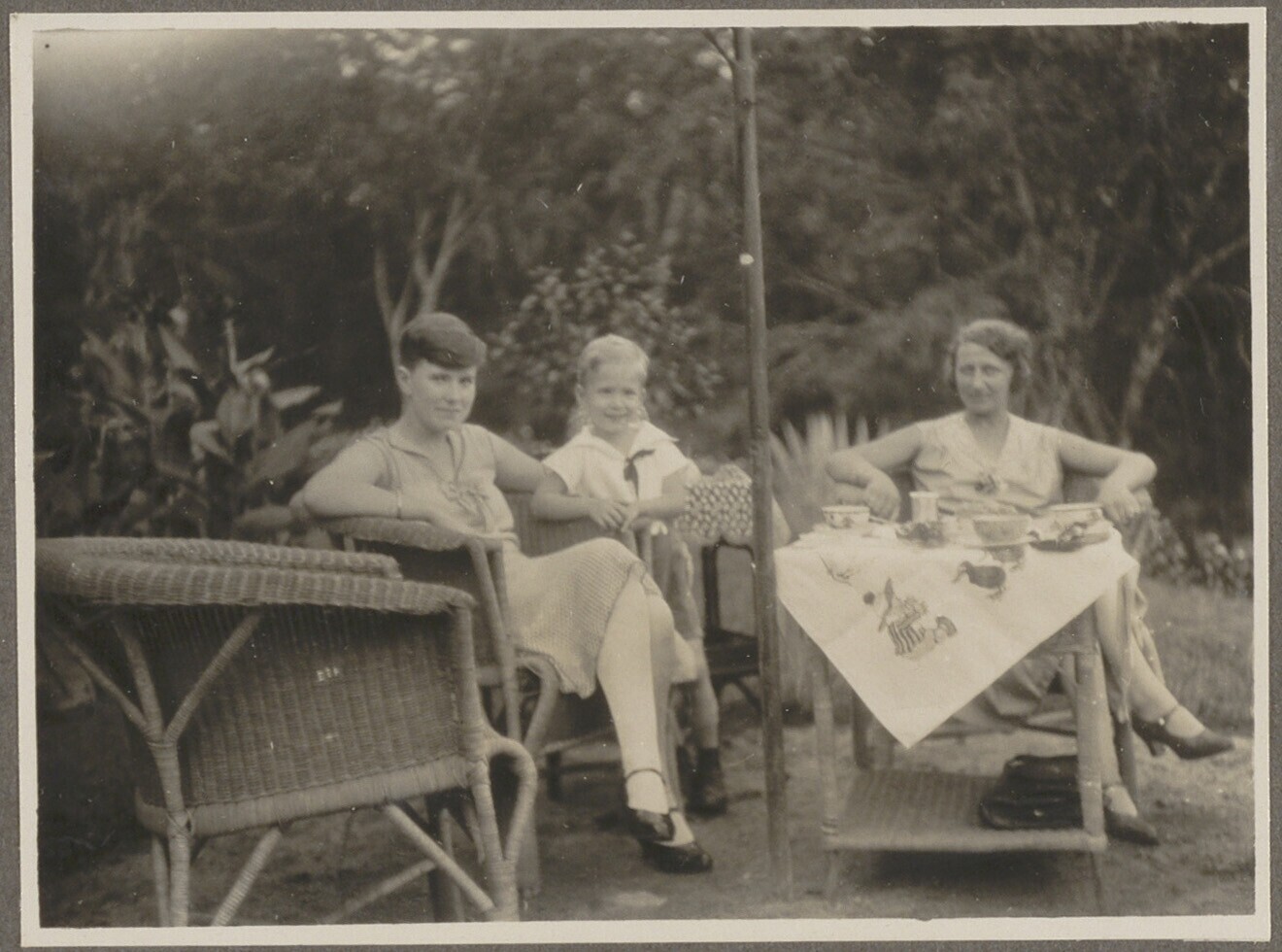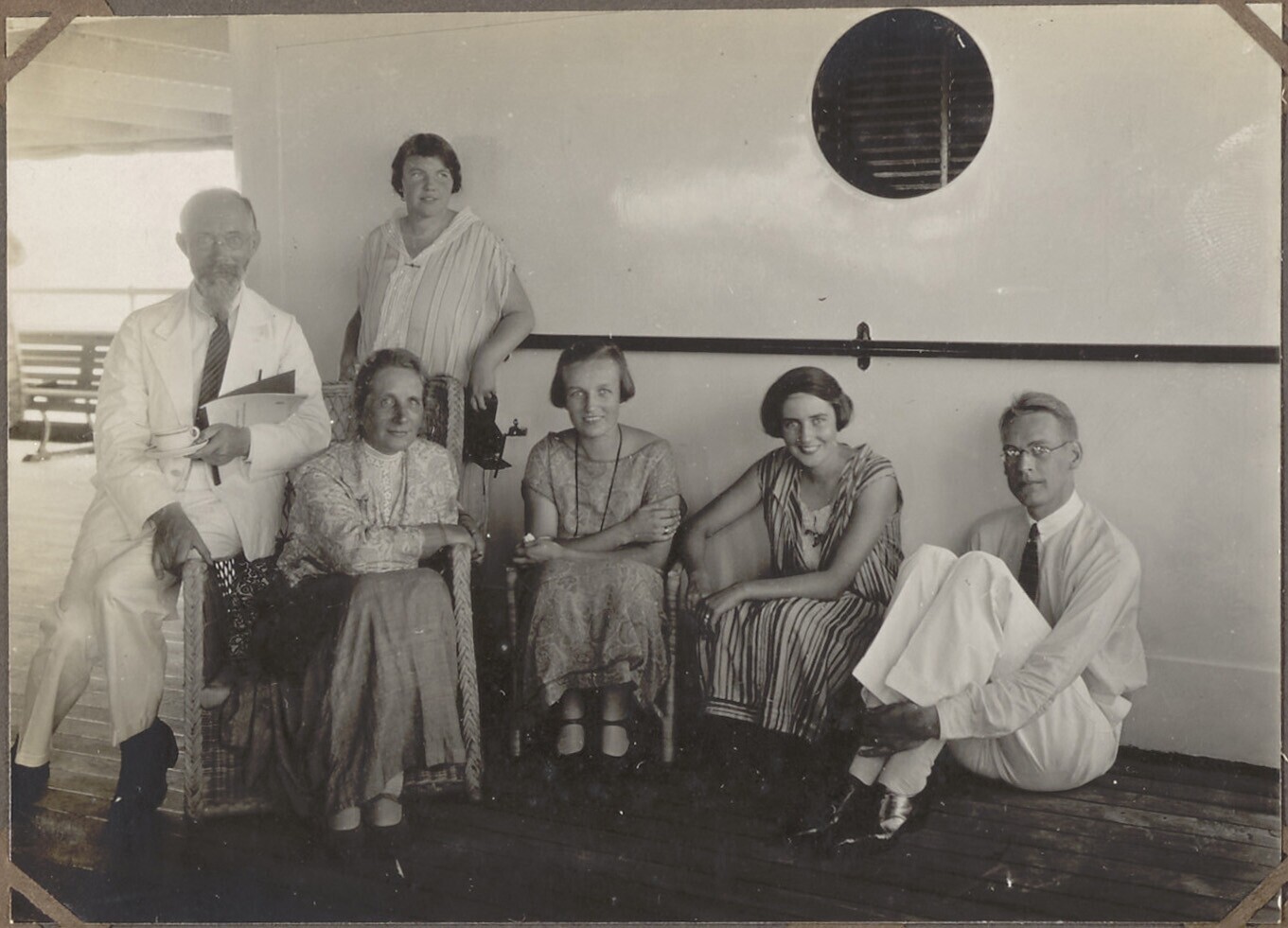 Gezelschap aan dek van stoomschip Koningin der Neder...
