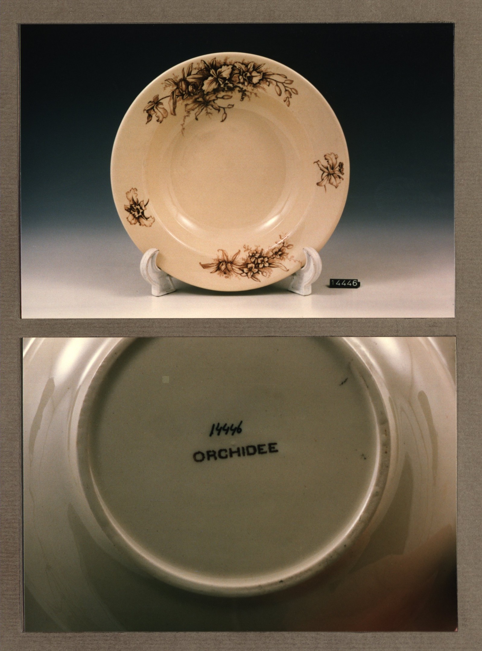 Diep bord, model Hollandsch met decor Orchidee