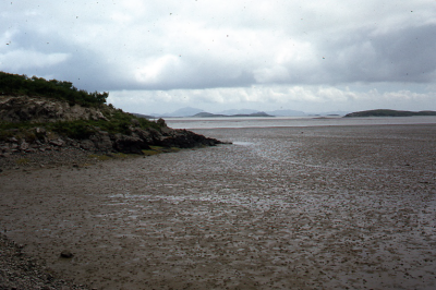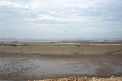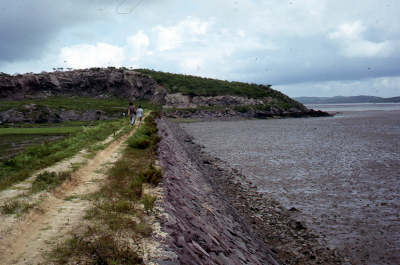 Slikken en leidam voor de kust van Zuid-Korea. Op de...