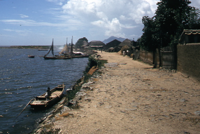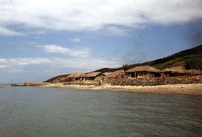 Dorpje langs de kust in Zuid-Korea. Op de zee enkele...