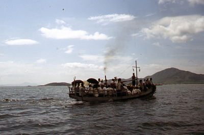 Passagiersbootje in de kustwateren van Zuid-Korea.