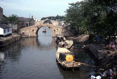 Kanaal in China, overspannen door bruggen. Langs de ...