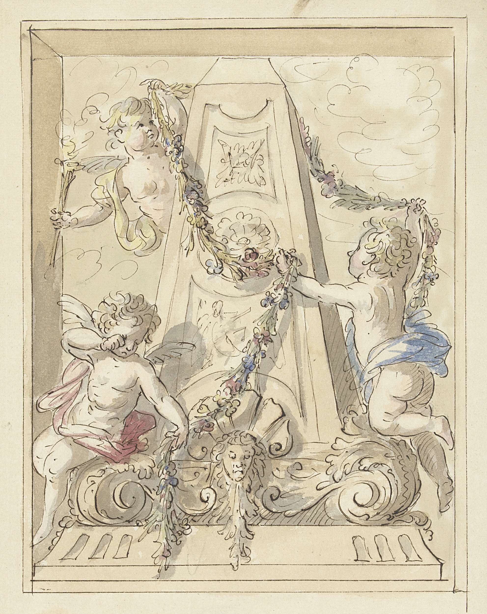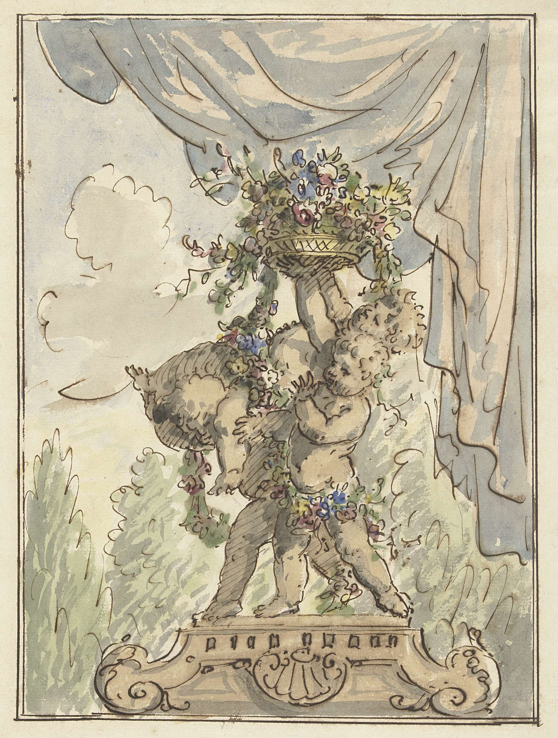 Ontwerp voor een zaalstuk: standbeeld van Flora waar...