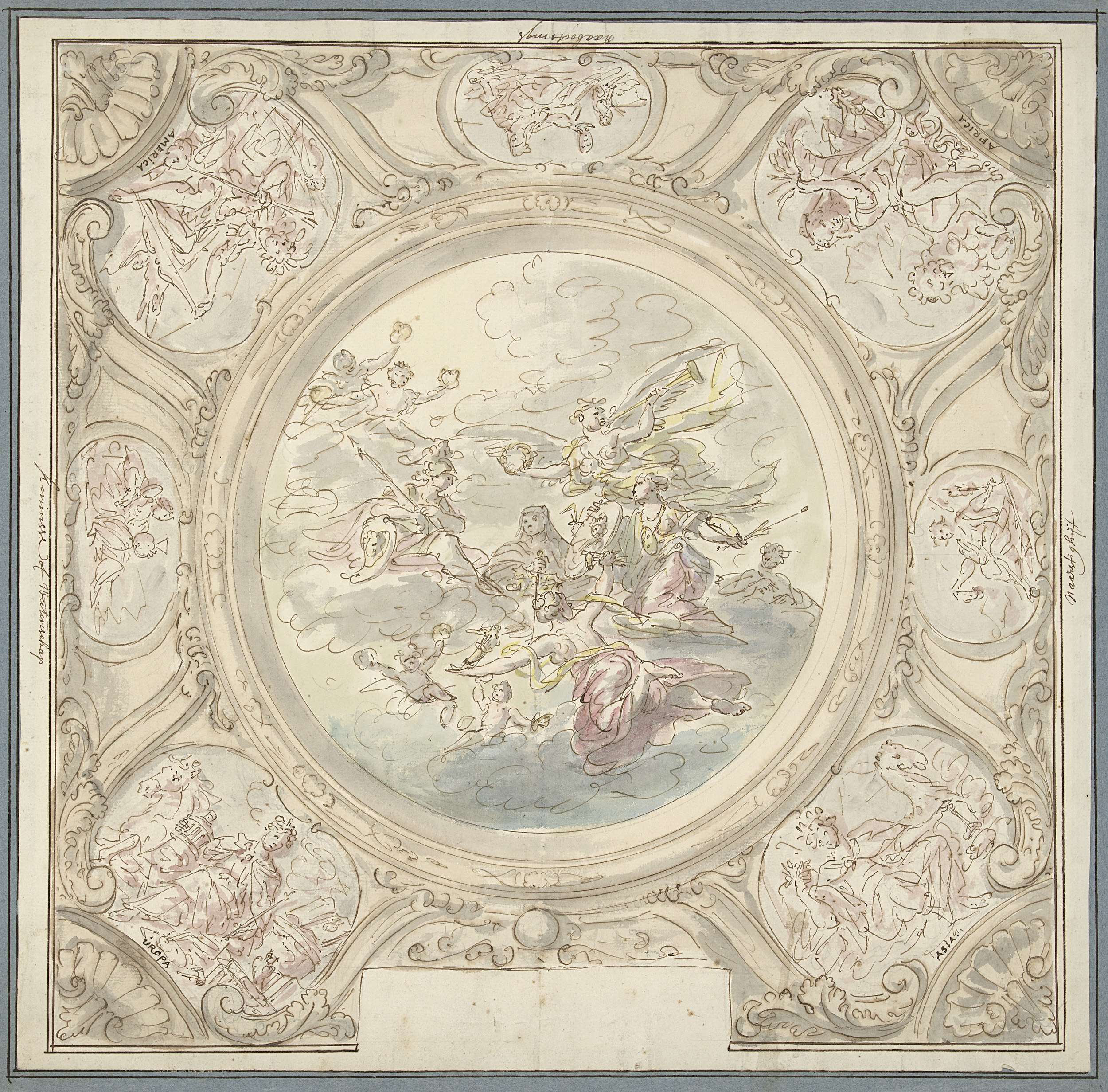 Ontwerp voor een plafondschildering: ornamentale vla...