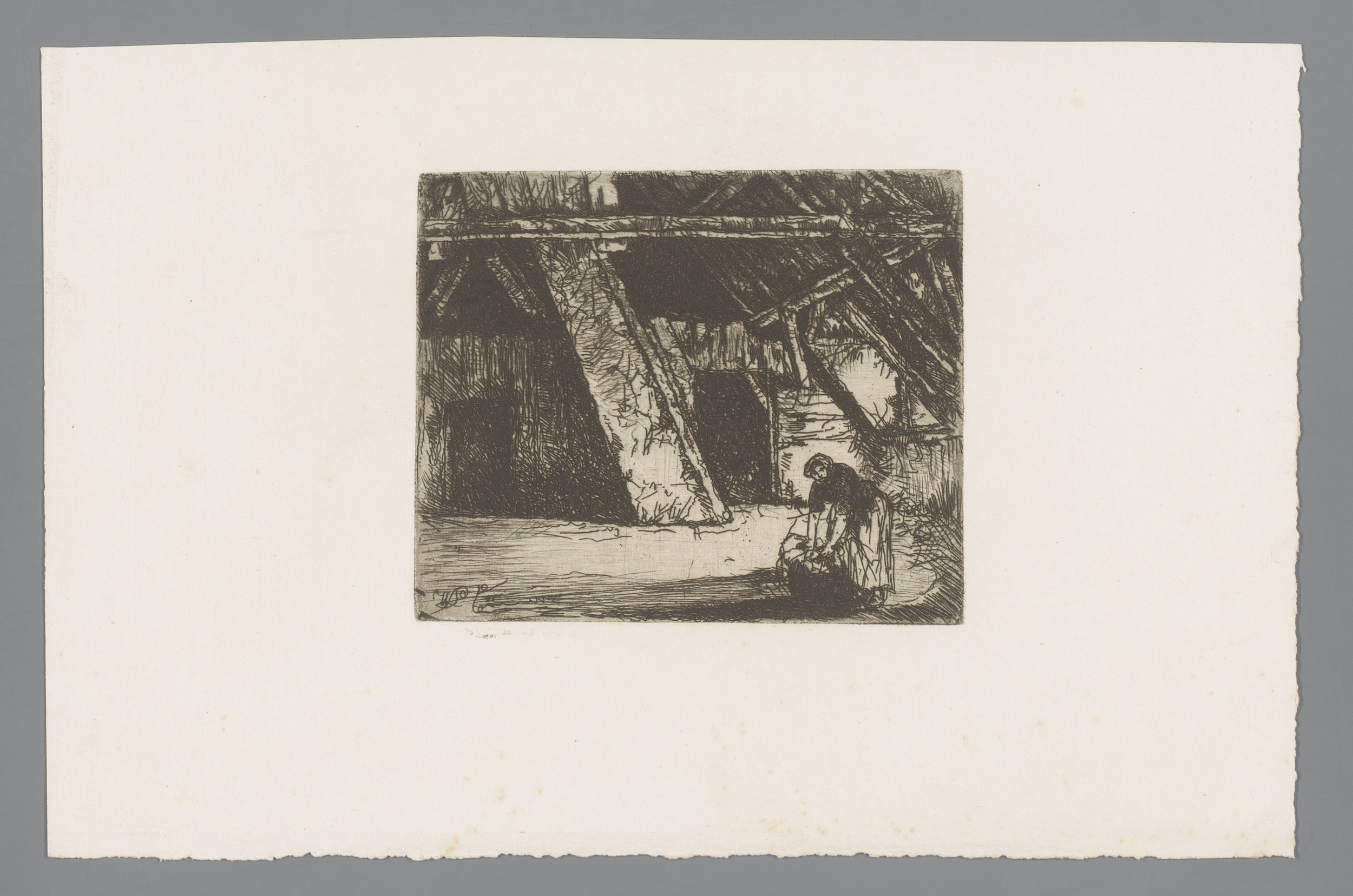 Vrouw knielend op zolder