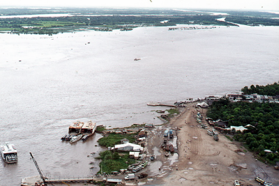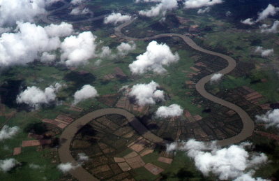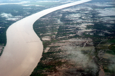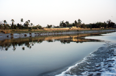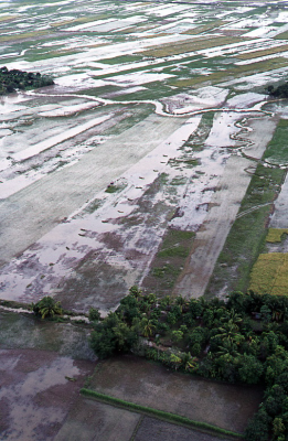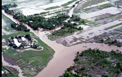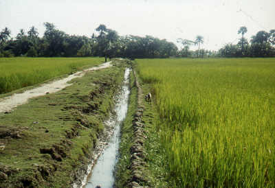 Kanaal in laaglandgebied in Bangladesh, 1989.