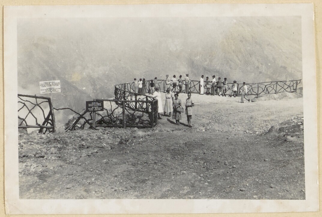 De deelnemers aan de pic-nic bij de Tangkuban-Prahu ...