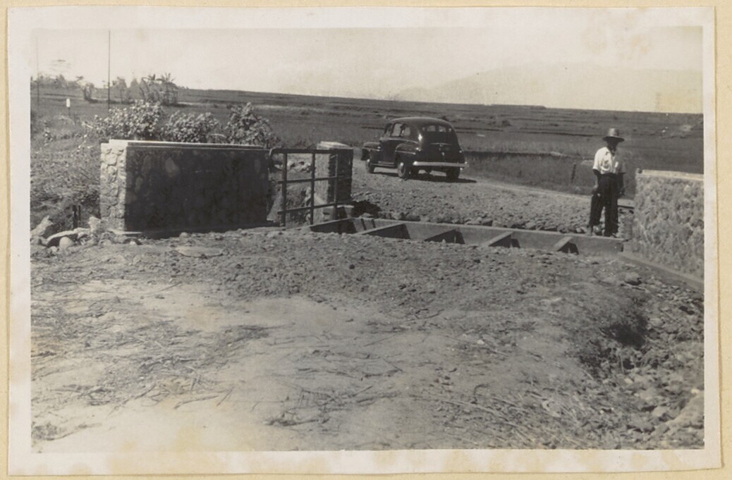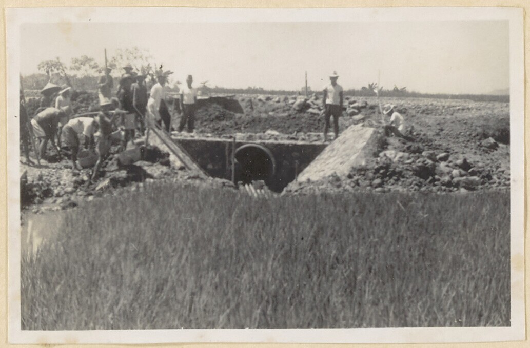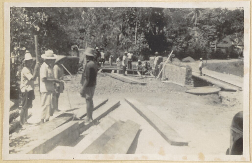 Javaanse arbeiders aan het werk bij de brug/duiker