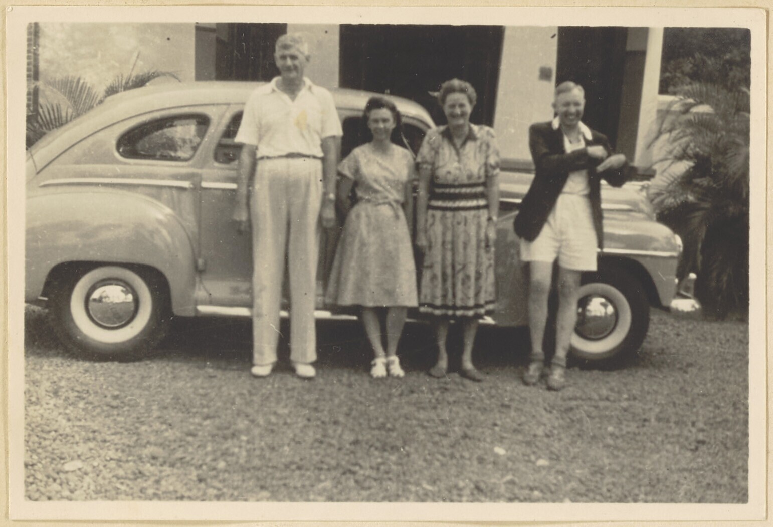 Indo - Europese mannen en vrouwen bij de auto in Dja...