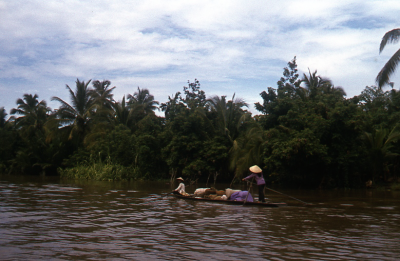 Bootje op een rivier in de Mekongdelta in Vietnam.