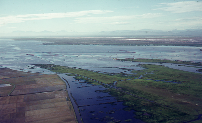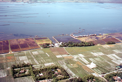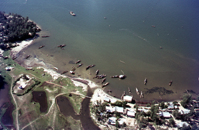 Luchtfoto van een kustgebied in de Mekongdelta in Vi...