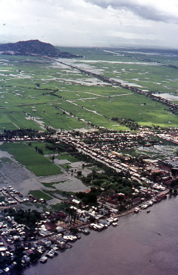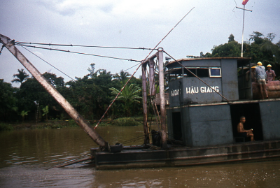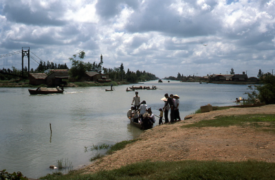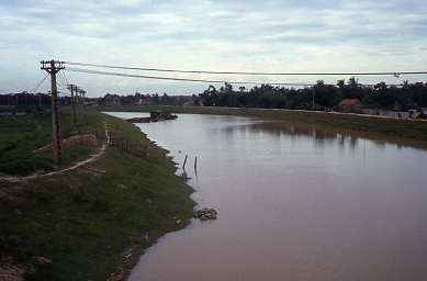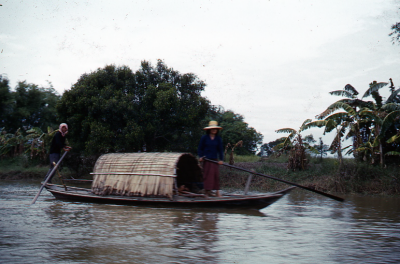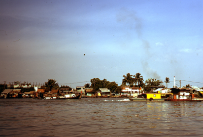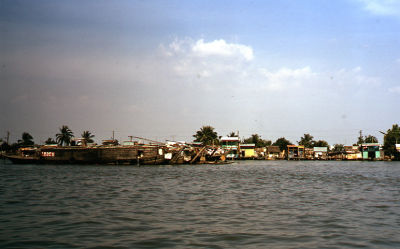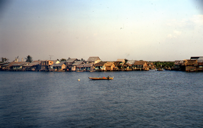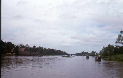 Rivier in de Mekongdelta in Vietnam, 1987. Op het wa...