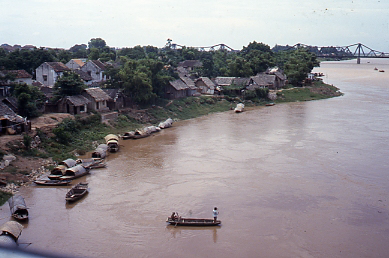 Rode Rivier bij Hanoi in Vietnam met op de achtergro...