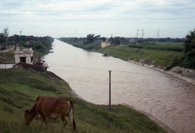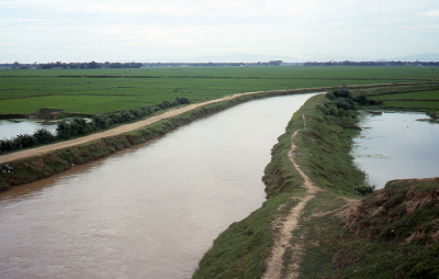 Kanaal tussen dijken in het gebied van de Rode Rivie...