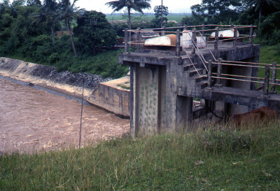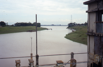 Detail van een stuw in de Day, een rivier in Vietnam.