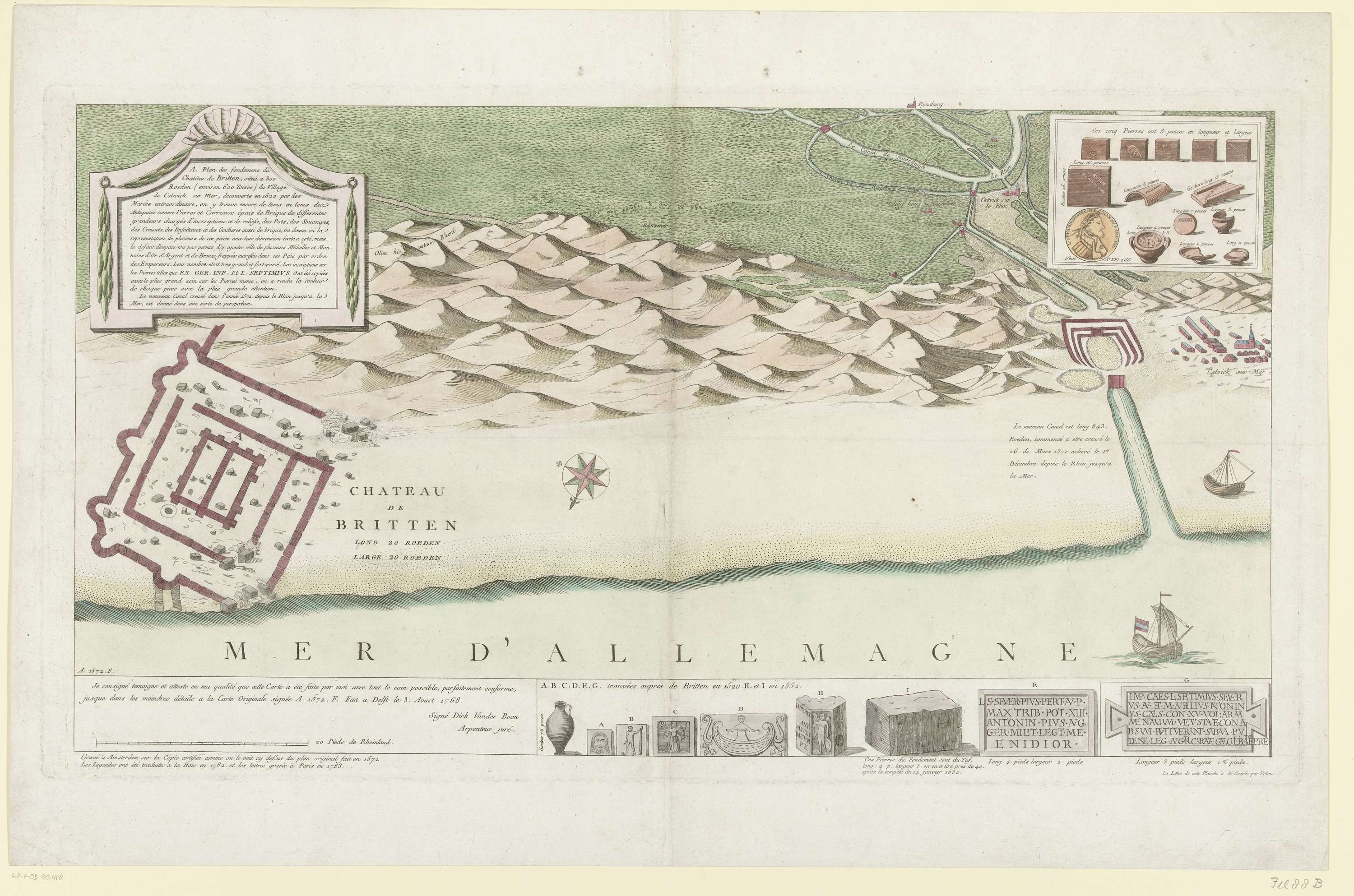 Plan van de kust bij Katwijk met de fundamenten van ...