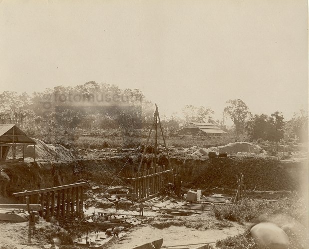 Aanleg van de sluis bij Beekhuizen, Paramaribo, Suri...