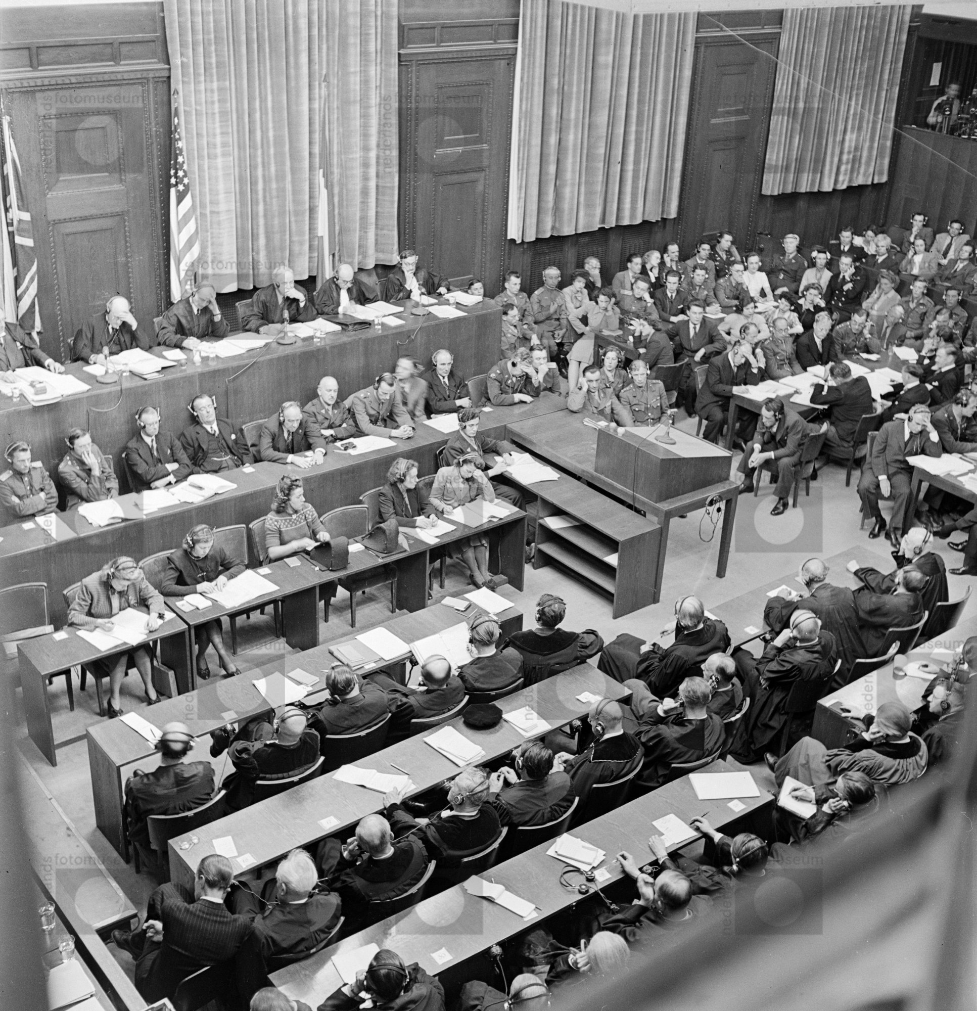 Overzicht van de rechtszaal tijdens het Neurenberg P...