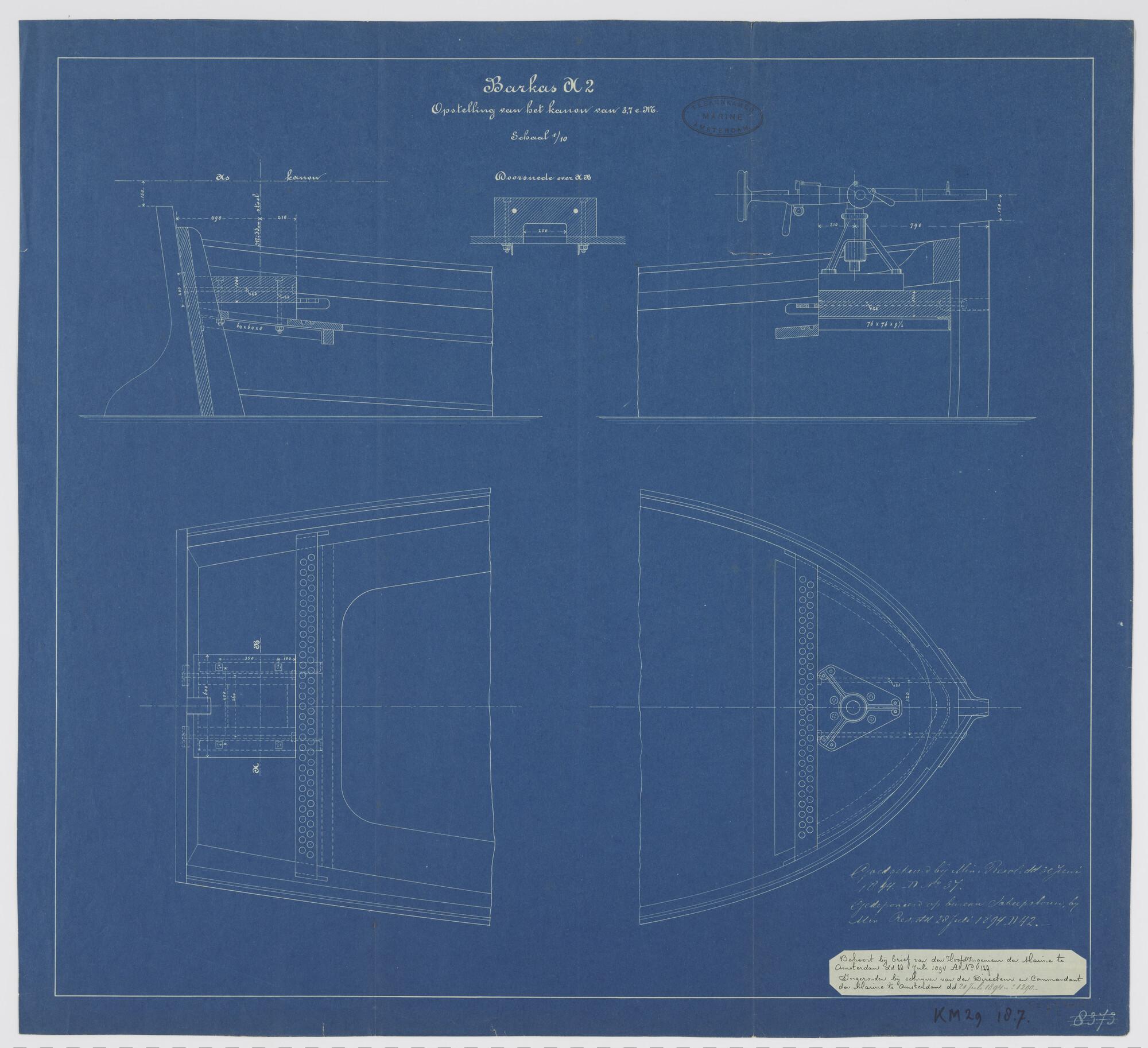 Plaatsing van de houwitser en kanon op barkassen en ...