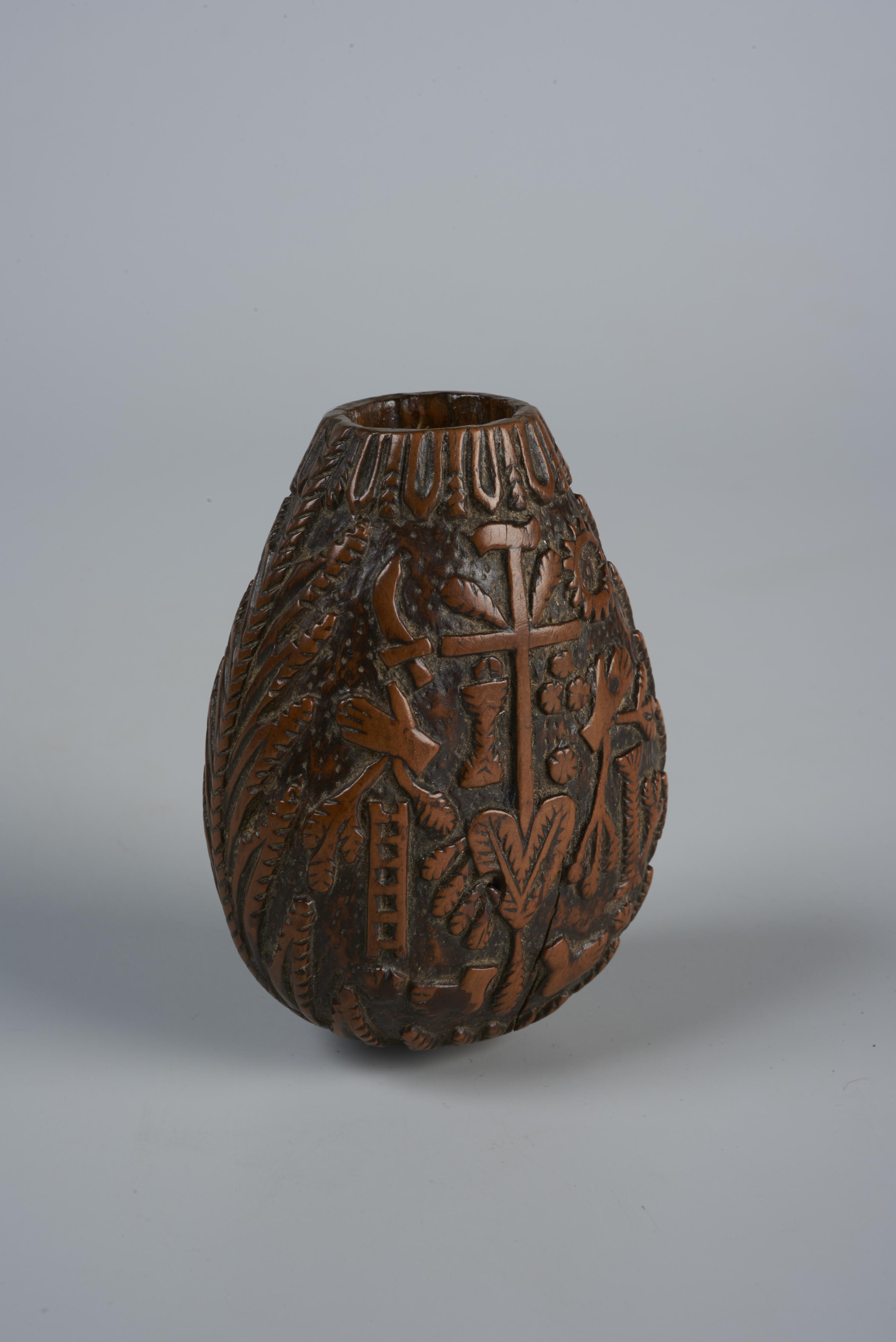 penseel in bruin en grijs over sporen van zwart krijt; kaderlijn met zwart krijt (1)