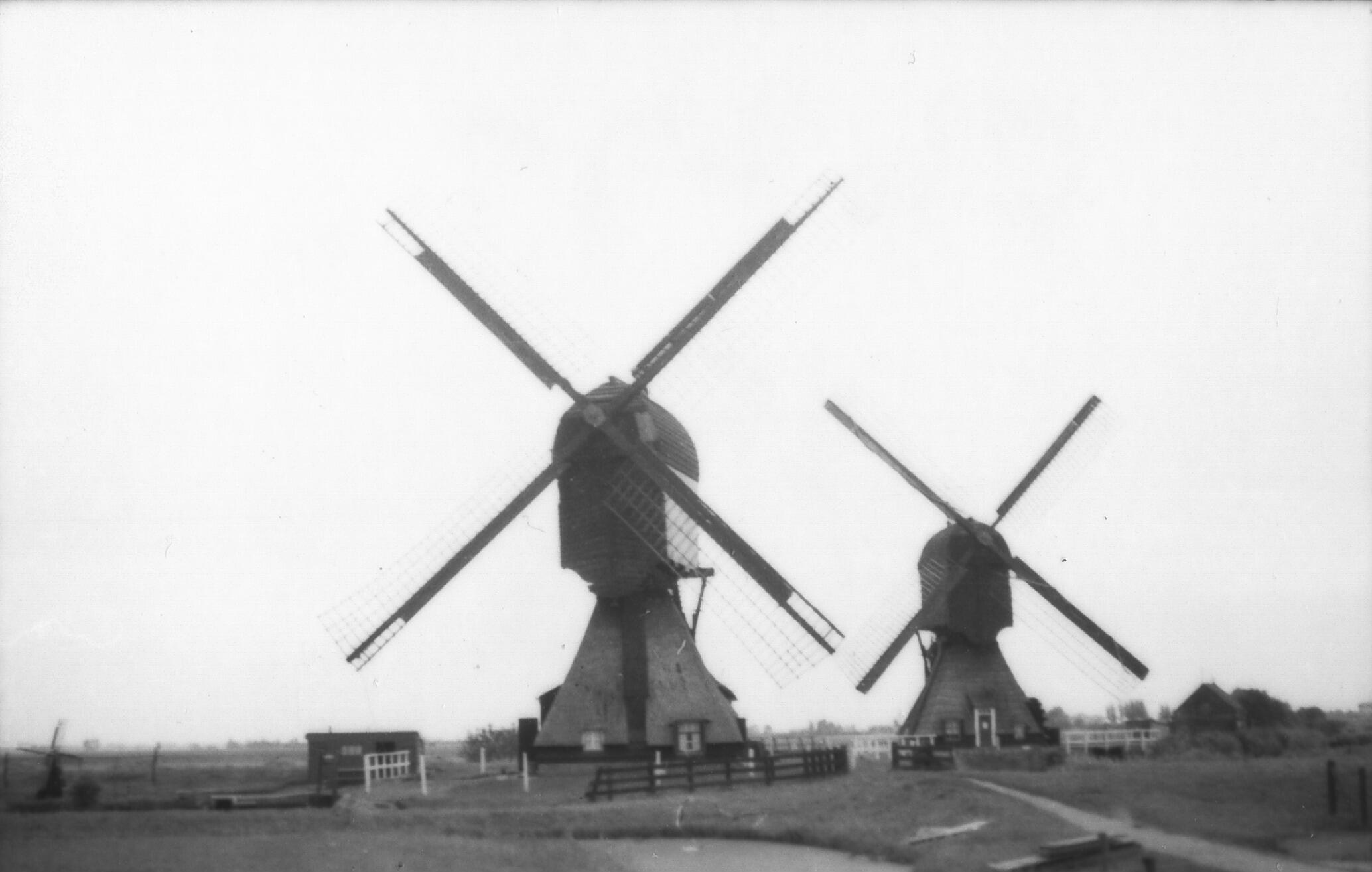 Twee wipmolens, Langerak, 1938 (zwart-wit foto)