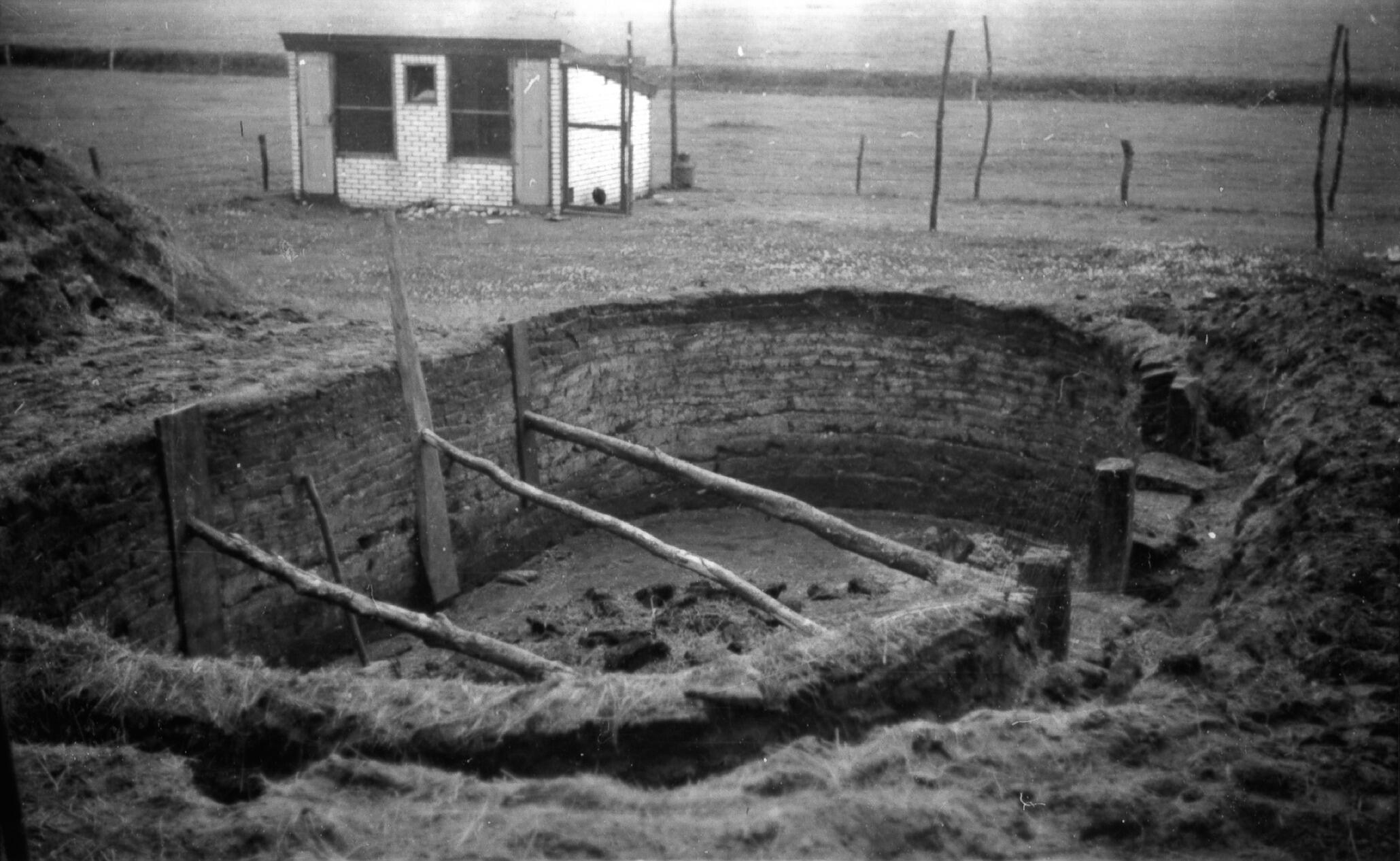 Silo van turf, Hijkersmilde, 1938 (zwart-wit foto)