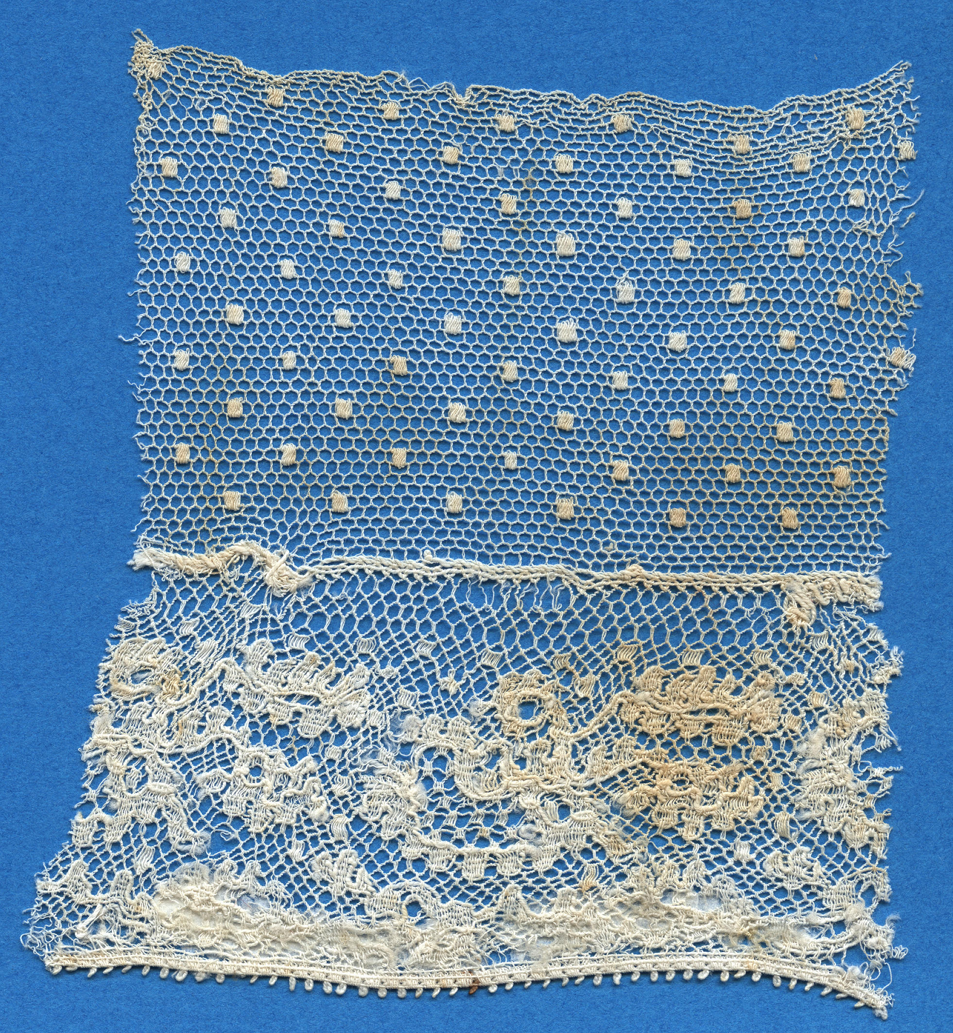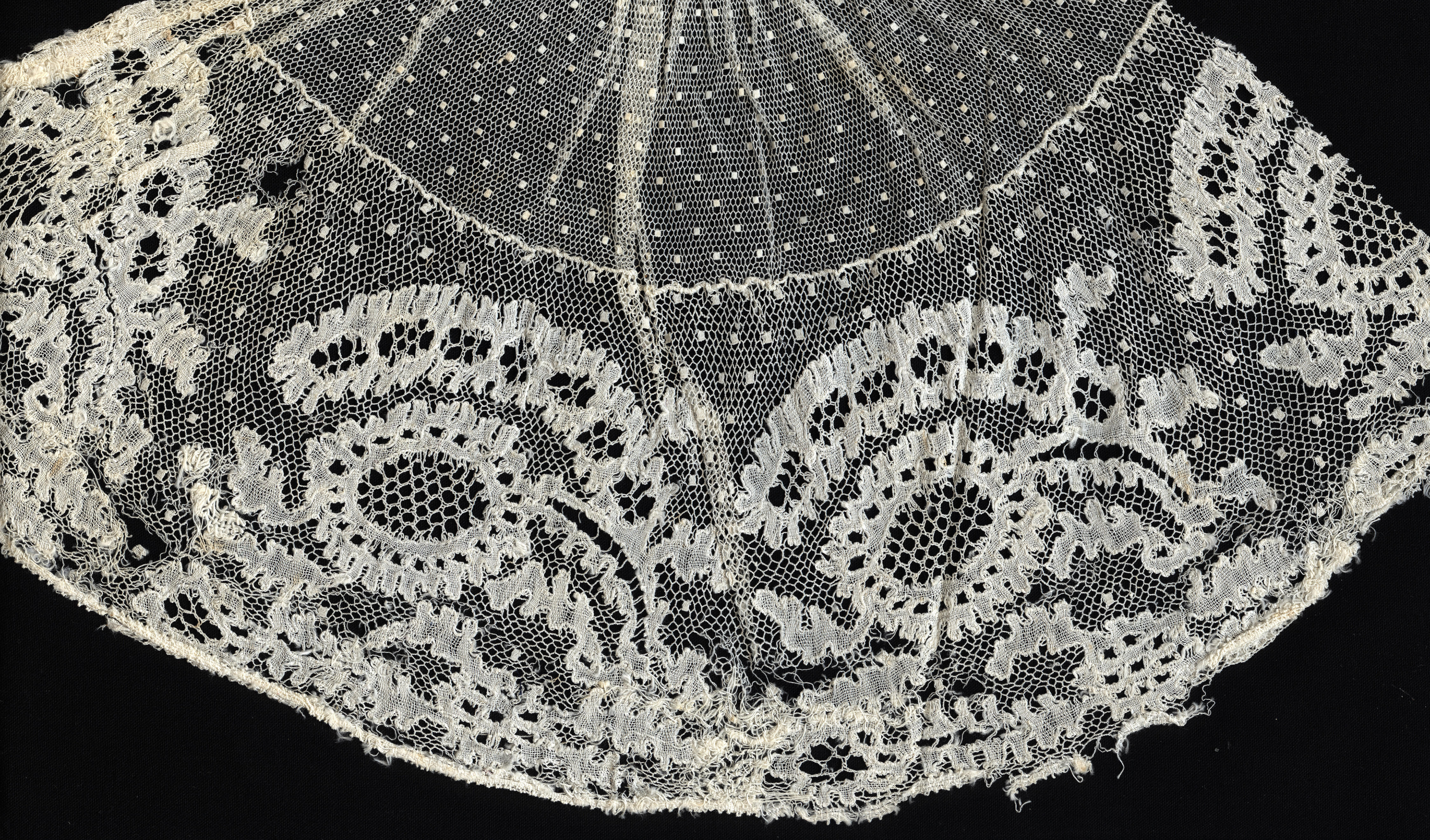 Fragment voorstrook van een kornetmuts, Huizen, voor...