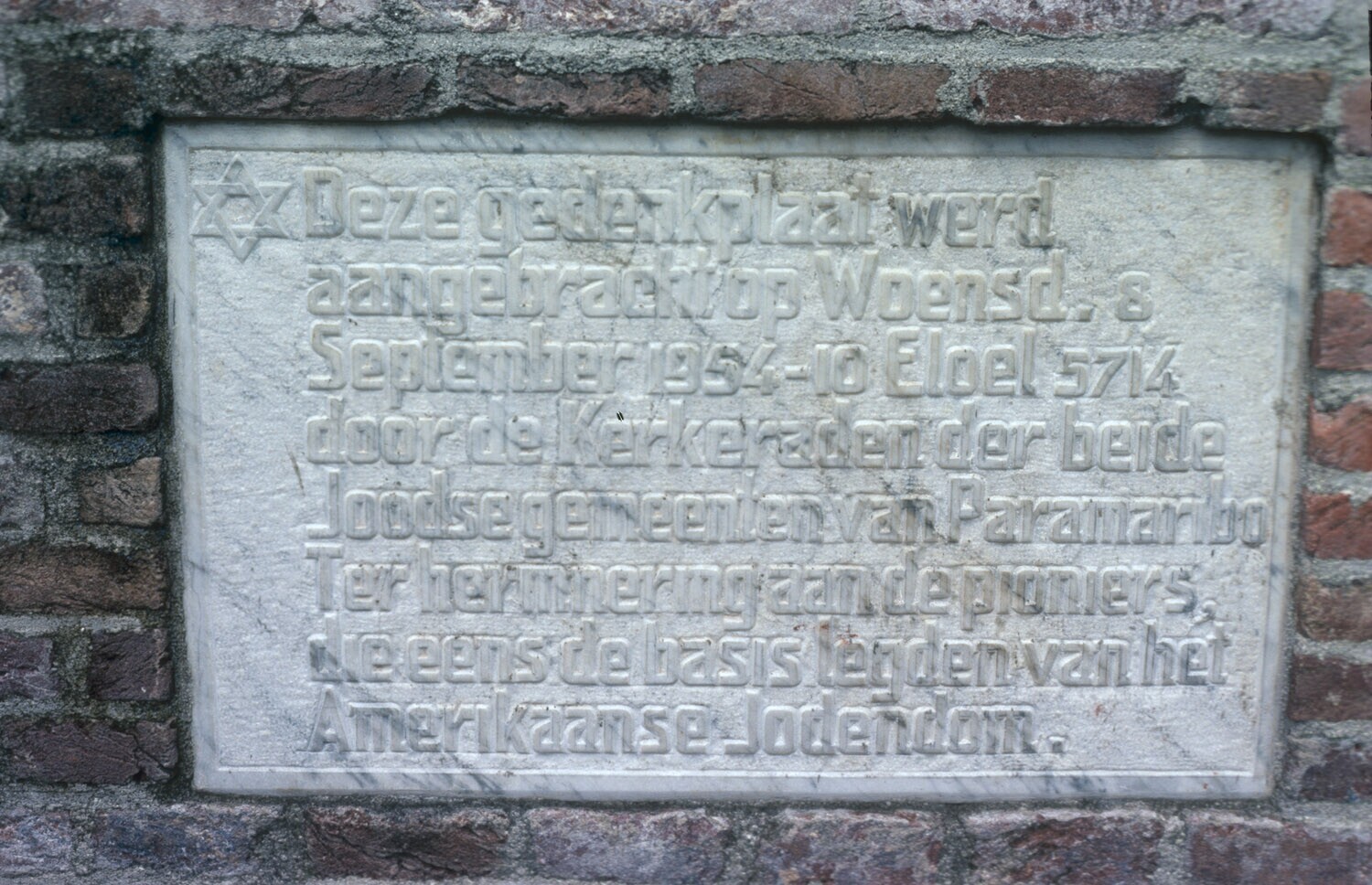 Gedenksteen in de synagoge van de Jodensavanne